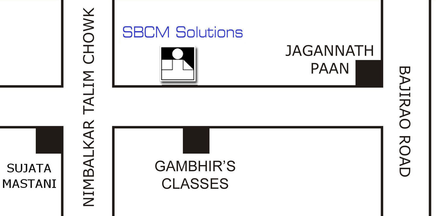 SBCM Solutions 1116/B, Ganga Niwas, Near Nimbalkar Talim Chowk, Sadashiv Peth, Pune - 411 030, Maharashtra, INDIA Landmark : Opp. Gambhir's Classes